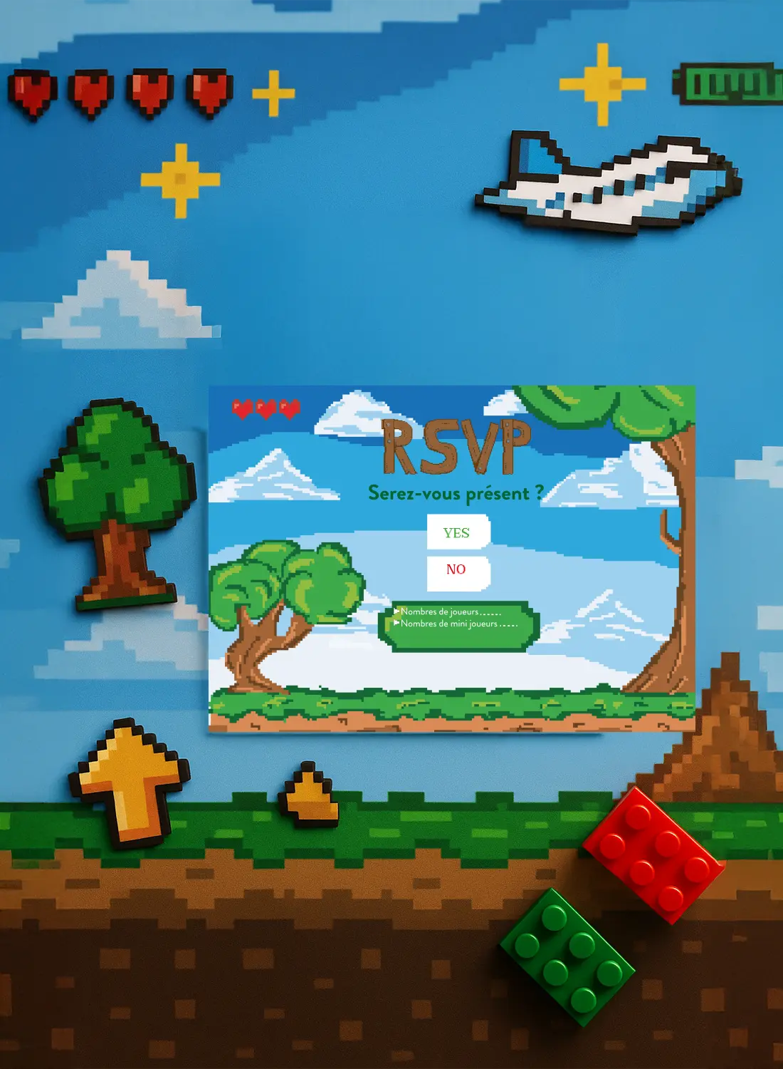 Une carte RSVP ludique, au style rétro-gaming, pour répondre à votre invitation comme on rejoint une partie épique !