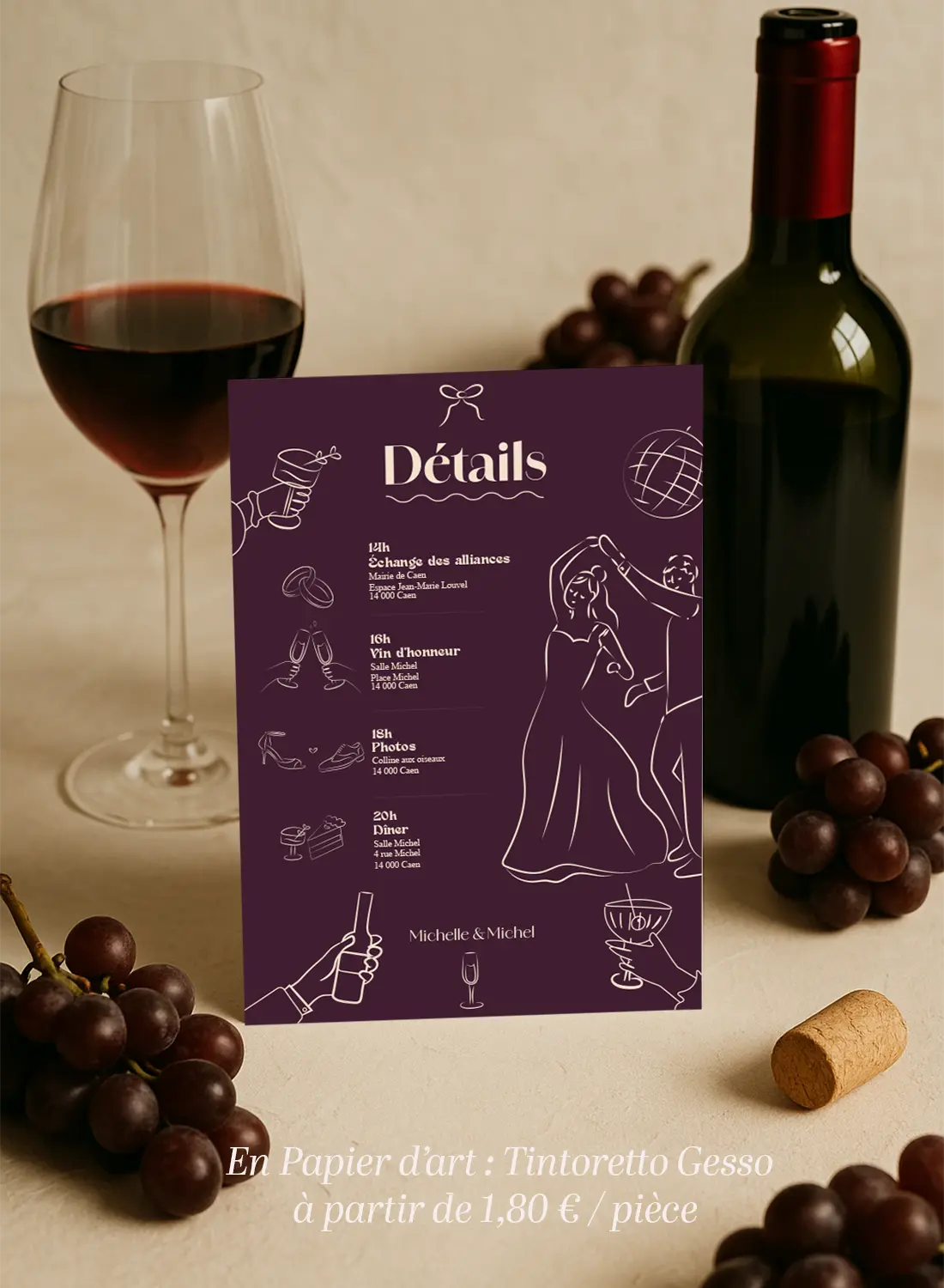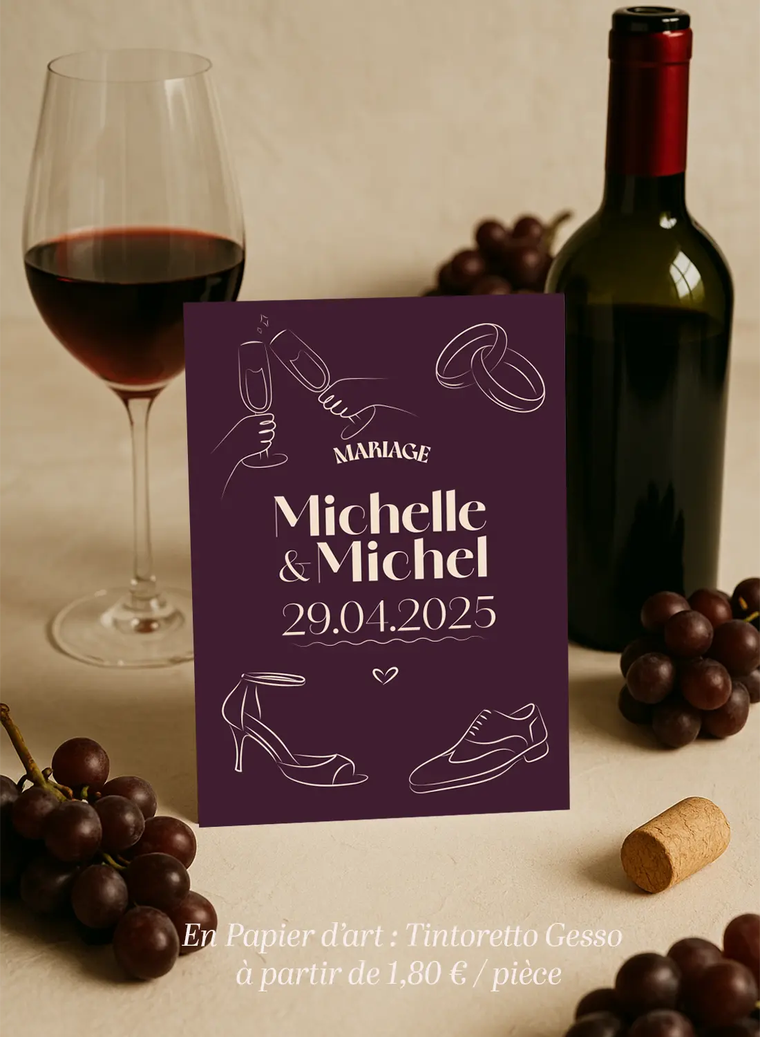 Faire-part de mariage Bordeaux chic et festif – parfait pour une journée pleine d’amour, de fête et de soleil.