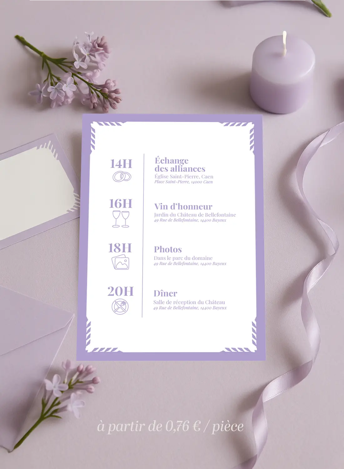 Un faire-part sobre et raffiné aux accents lilas, idéal pour une annonce chic et moderne, en parfaite harmonie avec le reste de la collection. 💌