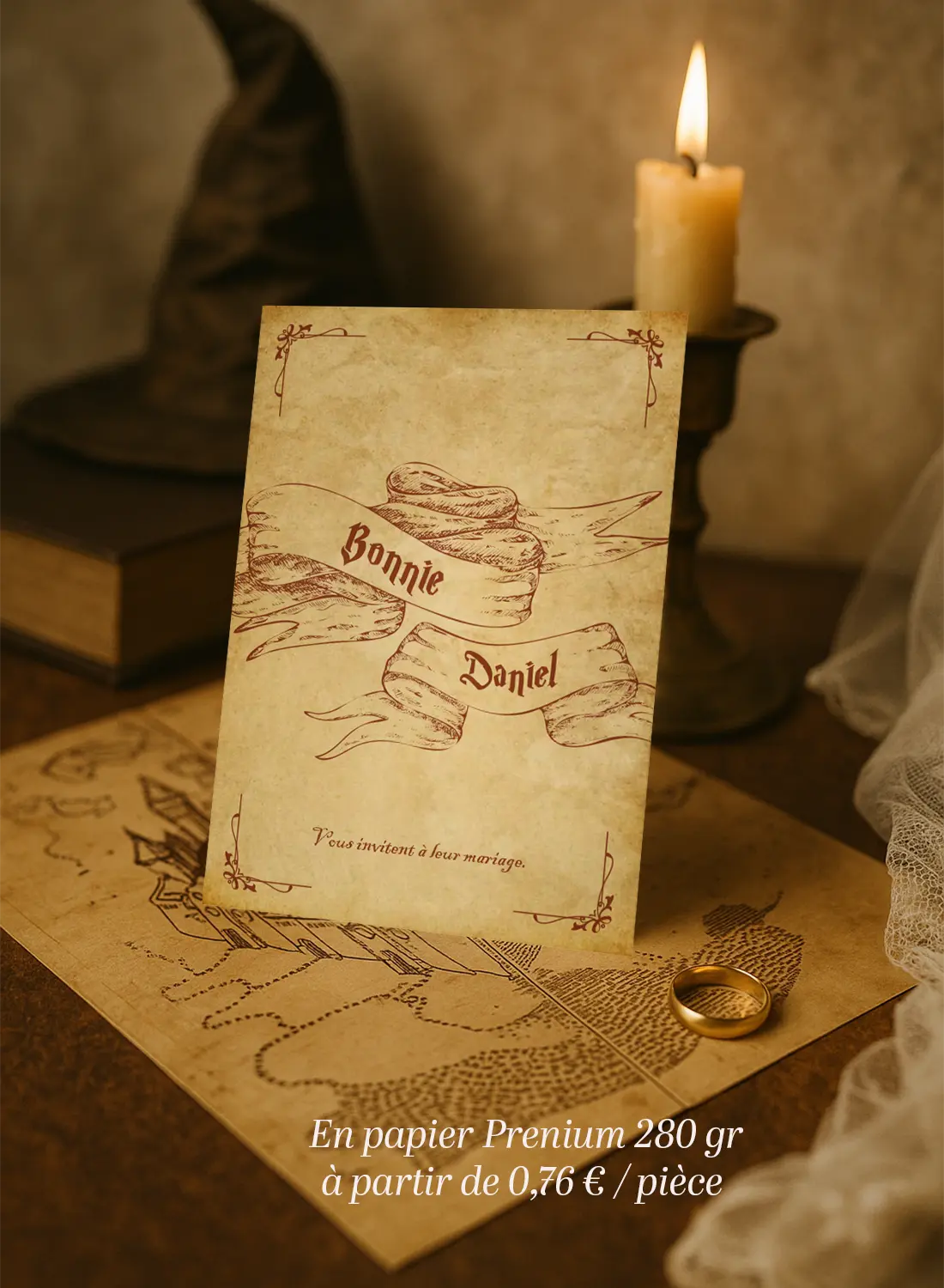 Faire-part Enchanté – Collection Parchemin du Maraudeur
