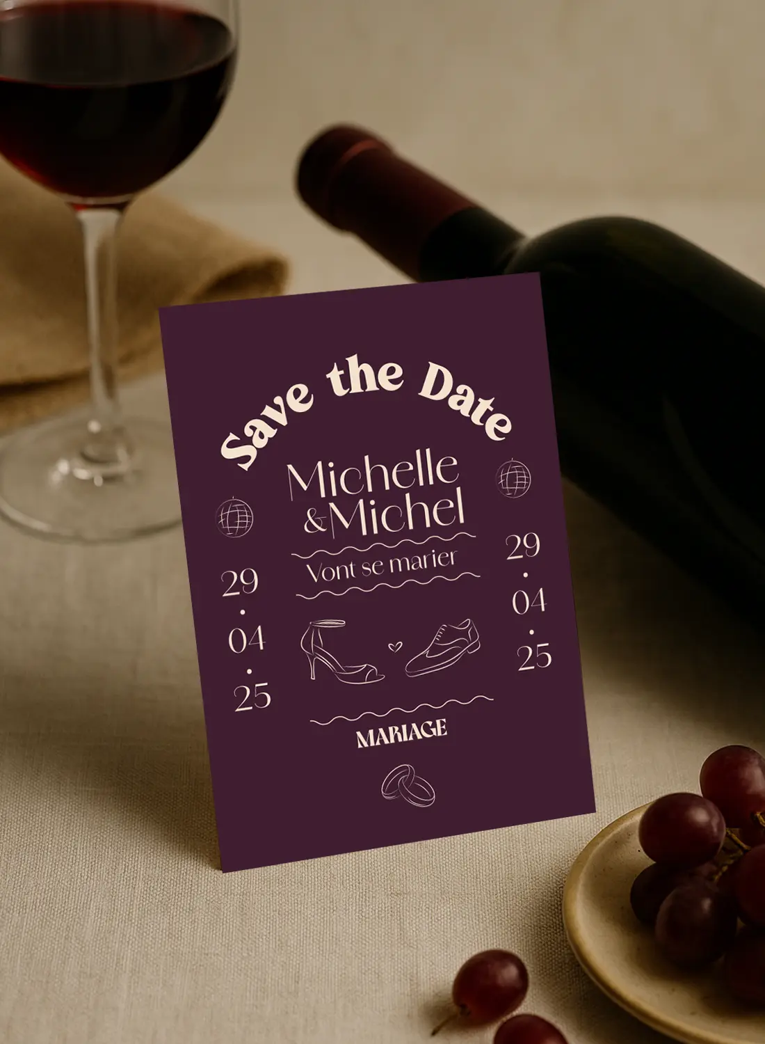 Save the Date Bordeaux festif et élégant – une carte qui donne le ton d’un mariage inoubliable, dans l’univers Dolce Vita.