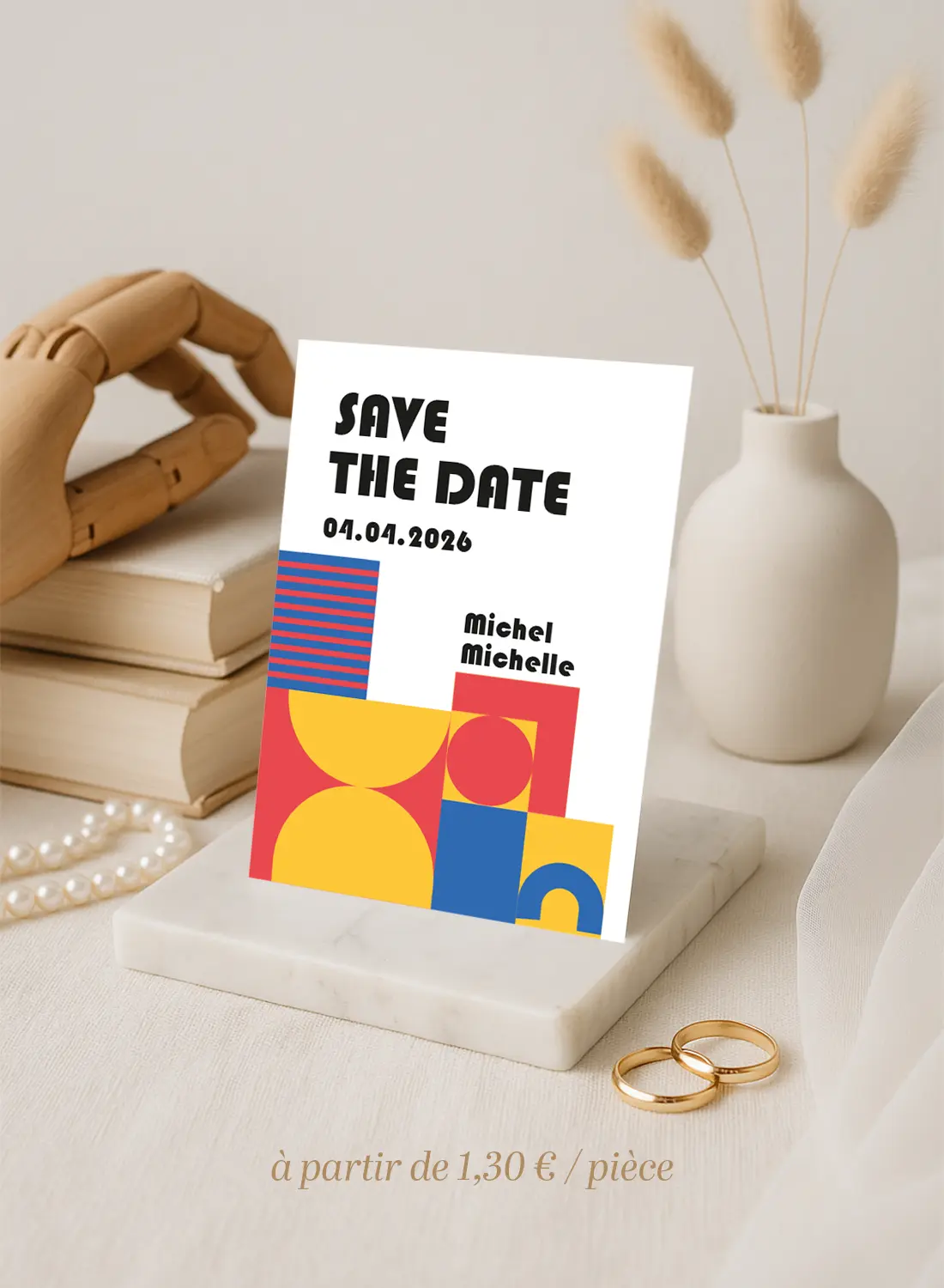 Un Save the Date graphique et coloré, qui annonce la date de votre mariage avec audace et modernité.